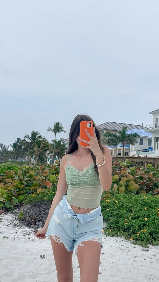 Sold outSage Lace Trim Tank