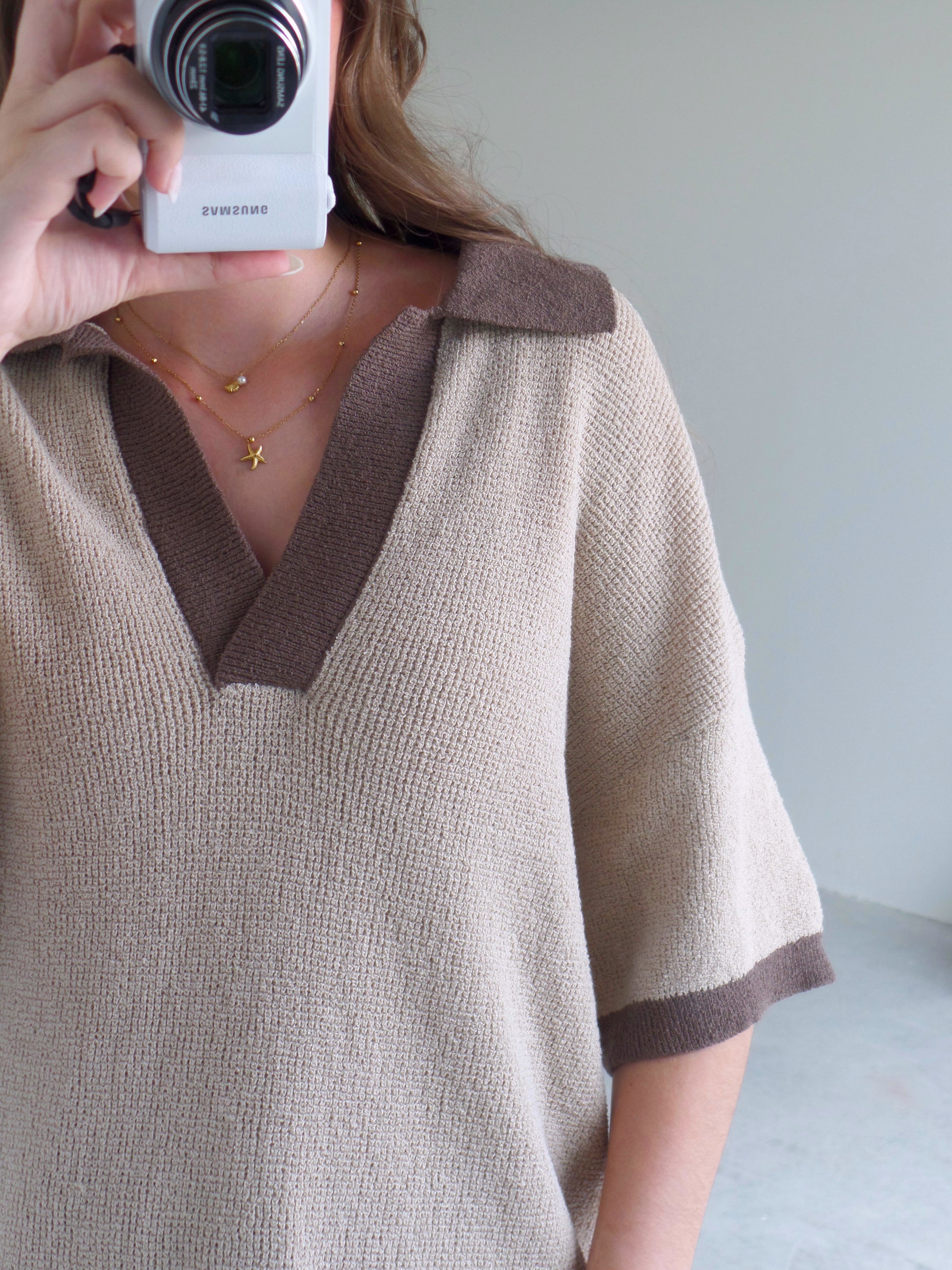 - V-neck top with collar